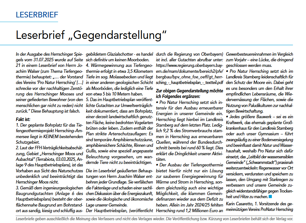 Zum Artikel im HERRSCHINGER SPIEGEL finden Sie hier unsere detaillierte Gegendartsellung: